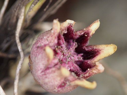 花は地上すぐのところにつきます。カタツムリやナメクジが媒介するのです。蝸牛媒花といいます。
