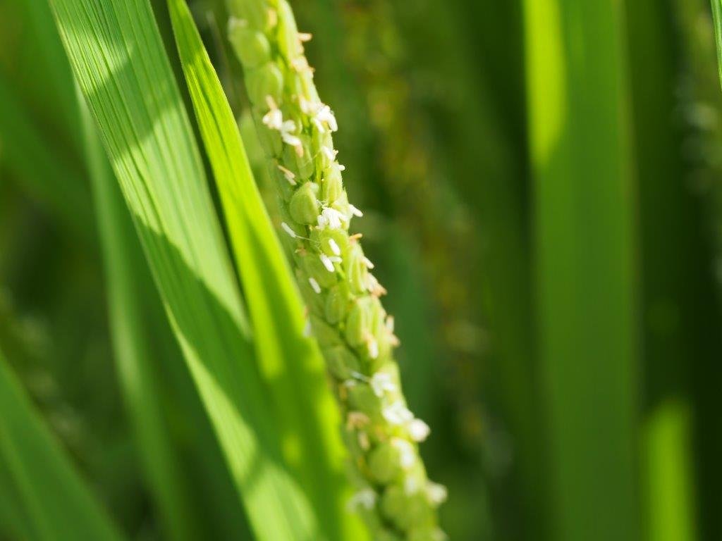 このところ 田には 稲穂が出てきている。じっくり見ると花がついている。