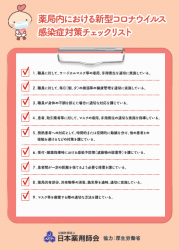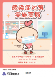 日本薬剤師会では、患者さんが安心して薬局に来局できるよう『新型コロナウイルス感染症等感染防止対策実施薬局 みんなで安心マーク』を作成し、新型コロナウイルス感染防止対策を徹底している薬局に発行しています。