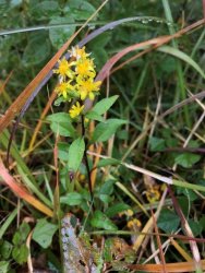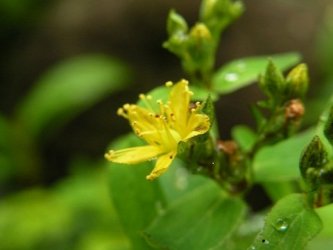 オトギリソウ @いなべ市 薬用部分 果実の熟した全草 用途 生葉を揉んで 切り傷 虫さされに外用 葉を透かすと油点が散在する。花は午前中に開いて 午後から次々と閉じてゆく。 昔 鳥の傷の秘薬であったこの薬を口外し