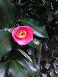 ヤブツバキ(ツバキ科) @いなべ市 寒さの中で赤い花が緑濃い葉の間からのぞいている姿に惚れ惚れします。 和名:椿/別名:ツバキ 生薬名:山茶(さんちゃ) 薬効: 花 滋養強壮、健胃・整腸 ツバキの種子からツバキ油がとれる