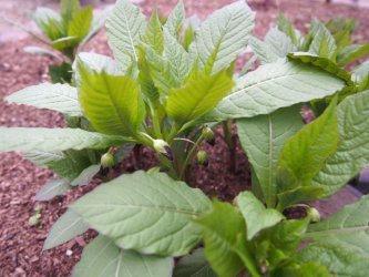 ハシリドコロ(ナス科)@ 京都薬用植物園にて 有毒植物です。 根茎や根は 製薬の原料(ローとエキス)に使うが 民間での使用は禁物。 全草などを誤食すると大変なことになります。注意してください。 春の若芽は柔らかなみずみず