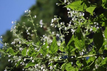 ソクズ (スイカズラ科) ニワトコににた花をつけています。 結構大きな多年草です。 生薬名 蒴てき(さくてき) 部位 全草 効果 利尿 クサギ (クマツヅラ科) 葉は独特のにおいがする。臭いといえばそうかも。 若い葉を